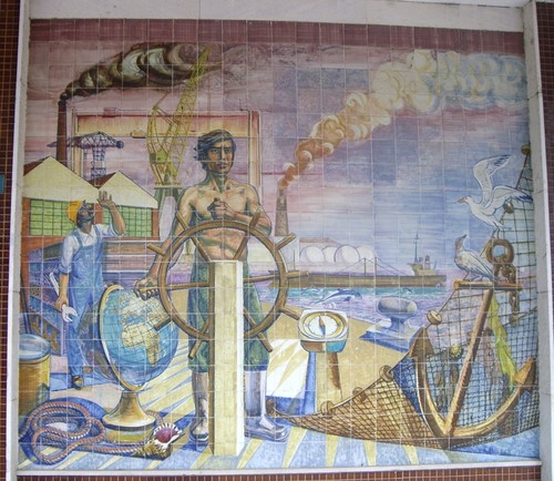 Estes painéis de azulejo, são da autoria de Louro de Almeida e Rogério Chora. Decoram a fachada do Edifício do Centro Comercial do Bonfim.