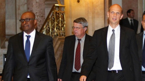 Este é o trio de jarras que nos tem andado a tratar da saúde, de parceria com o bando nacional. Desde sábado, tem-se falado bastante de Arménio Carlos a propósito de uma sua intervenção em que se referiu ao sr Selassié (o primeiro da foto). até hoje não sei o nome do careca branco. nem do branco de gravata vermelha...